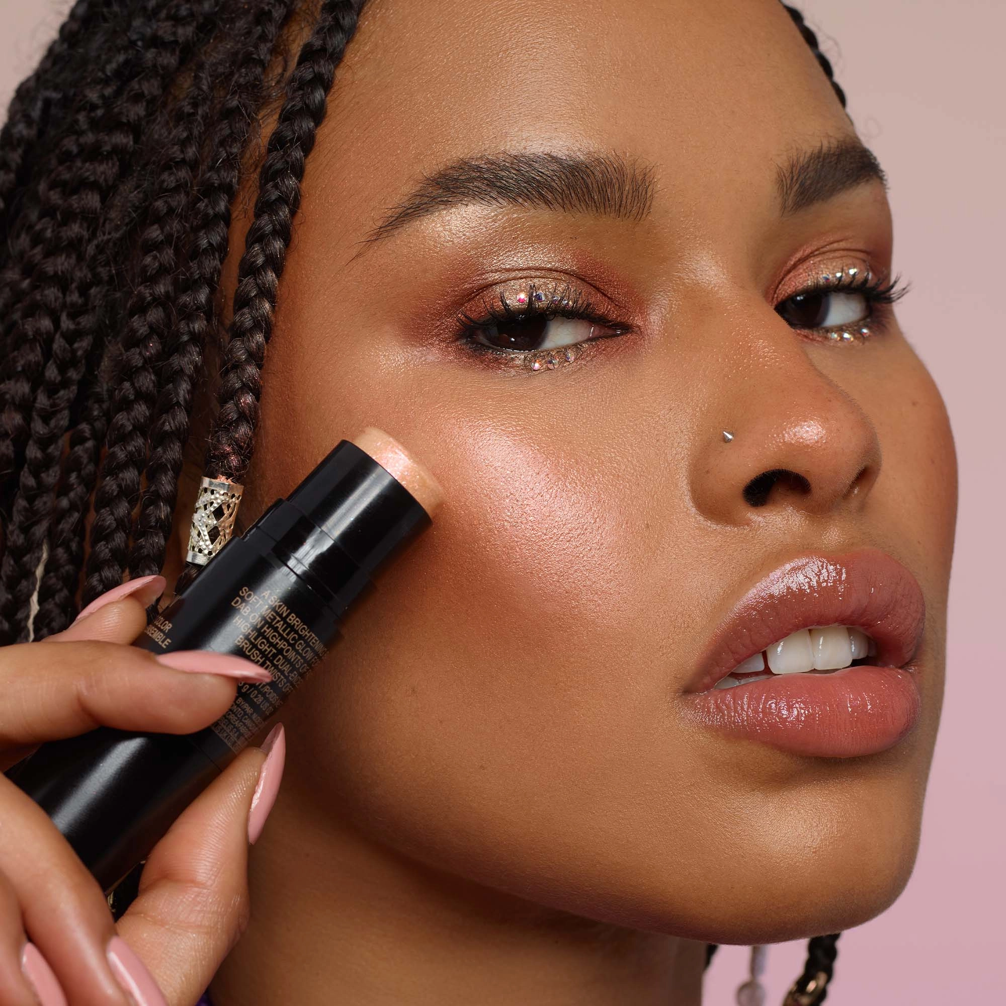 Swipe NUDESTIX Nudies All Over Face Color Bronze + Glow on your eyes, high points of the face, and lips for a natural-looking radiance. Blend the color with a stippling brush or your fingers for a seamless finish. Don’t forget to take a selfie and tag @nudestix to show off your glowing look!