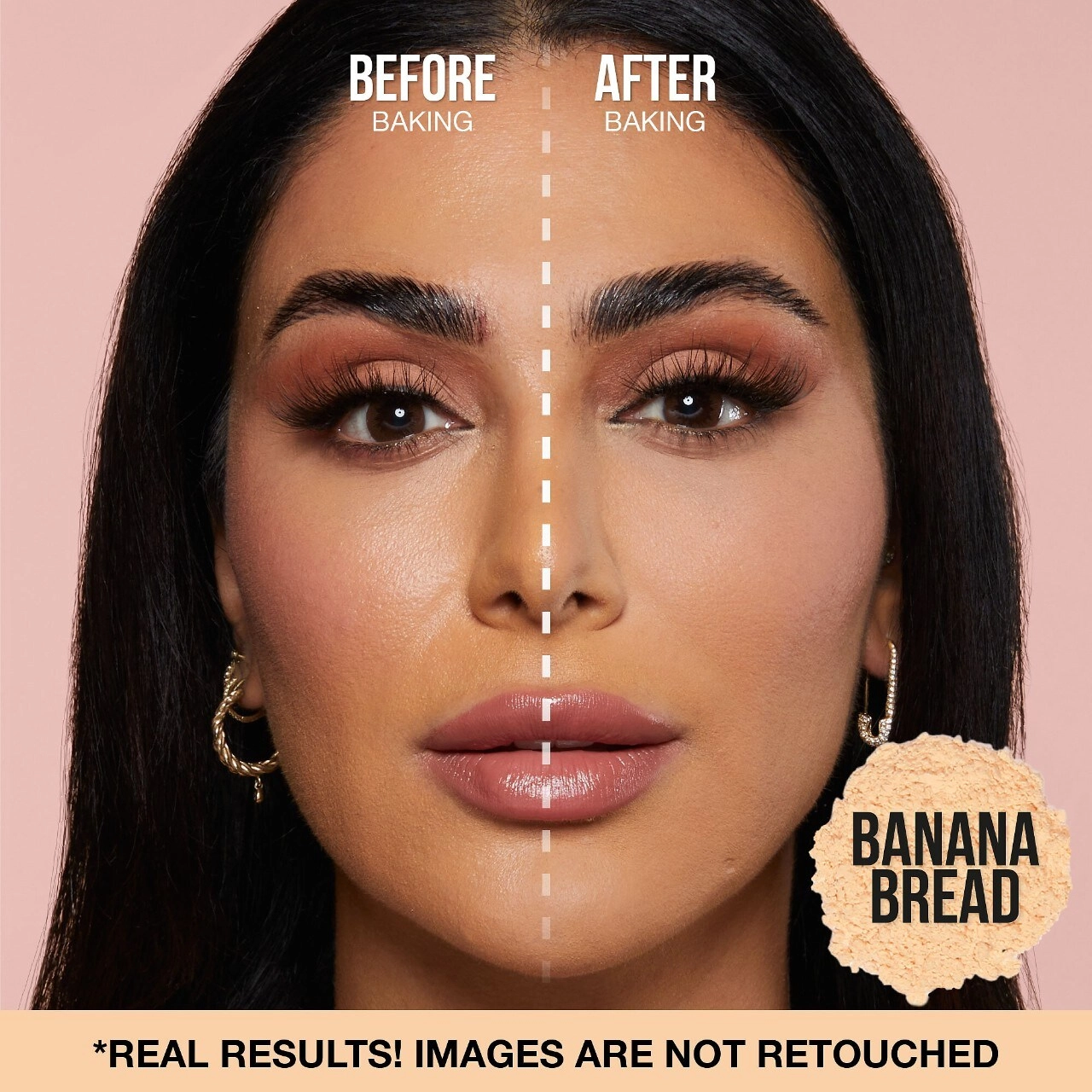 Create a flawless, long-lasting complexion with HUDA BEAUTY Easy Bake Loose Baking & Setting Powder in Banana Bread. This vegan powder is perfect for light, medium, and tan skin tones with golden undertones. It brightens and disguises under-eye darkness, giving you a matte finish and medium coverage. Trending on social media, this community favorite is a must-have in your makeup routine.