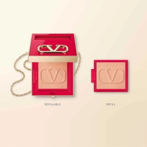 Complete your Valentino makeup collection by pairing the Go-Clutch Refillable Radiant Setting Powder with a Mini Rosso Lipstick (sold separately). Personalize your compact by plugging in the lipstick and use the removable chain to carry the clutch cross-body.