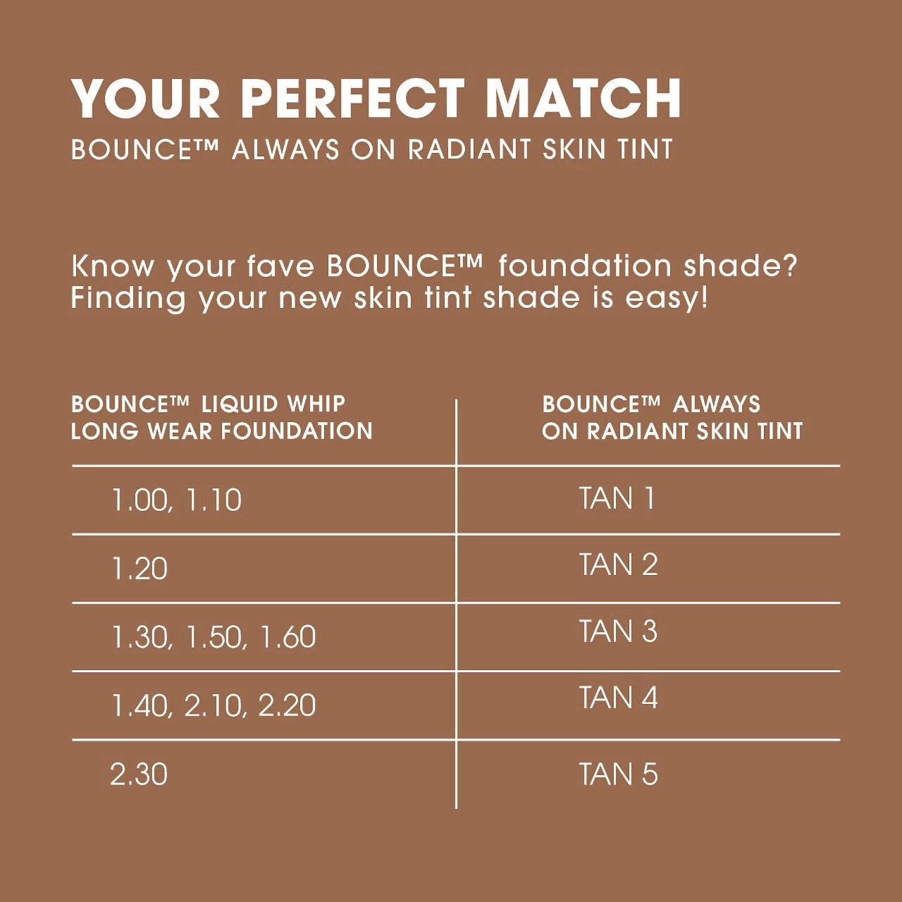 Instantly even tone, hydrate, and smooth with this mistake-proof long-wear formula. The Beautyblender 12-Hour Always on Radiant Skin Tint is a vegan skin tint that provides 12 hours of wear and hydration. It offers light to medium buildable coverage for a naturally radiant finish. Infused with hyaluronic acid and soothing niacinamide, this skin-loving tint visibly improves the look of dullness, pores, and discoloration. With 20 flexible shades available, it stretches across similar skin tones for a perfect match.