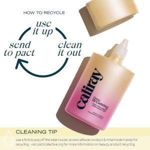 Caliray Freedreaming Blurring Lightweight Skin Tint is committed to sustainability. The bottle is made of 75% recycled plastic, and the carton is made from 100% post-consumer recycled paper (FSC Certified) and can be recycled curbside. To recycle the product, use up the remaining product and rinse the bottle with warm water and dish soap. You can then mail the bottle to Pact Collective for recycling.