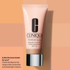 Experience the ultimate hydration and skin perfection with CLINIQUE Moisture Surge™ Sheertint Hydrator Broad Spectrum SPF 25 Tinted Moisturizer. This lightweight cream provides up to 12 hours of hydration, light coverage, and skin protection all in one. Formulated with powerful ingredients like hyaluronic acid and activated aloe water, it helps keep your skin hydrated and plumped, giving you a dewy and fresh complexion.