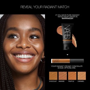 Experience the luxurious NARS Pure Radiant Tinted Moisturizer in the shade Marrakesh, specially formulated for medium-deep skin with olive undertones. This lightweight tinted moisturizer offers a natural and glowing finish while evening out skin tone. With its light coverage and cream formula, it provides a translucent veil of protection.