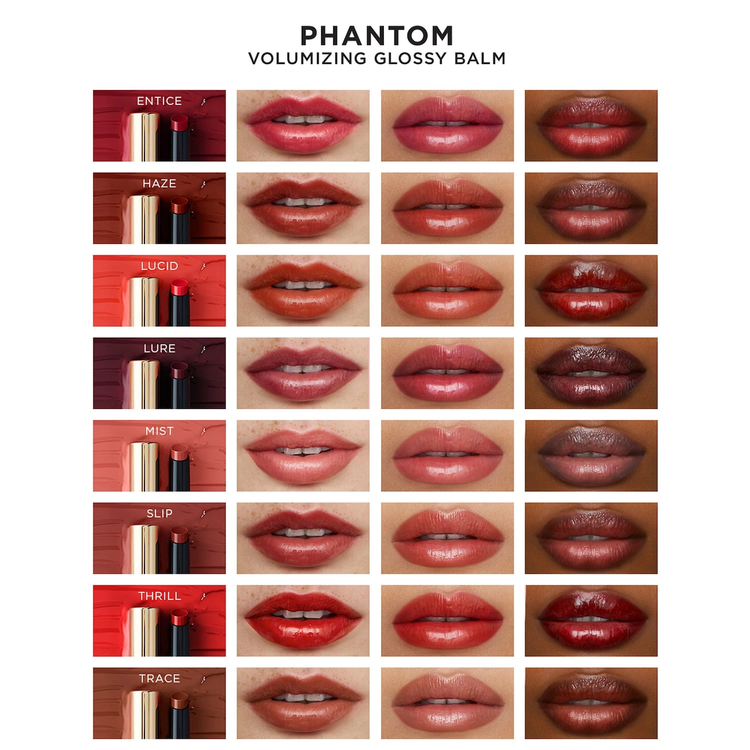 To use the Hourglass Phantom Volumizing Glossy Lip Balm, twist the base slightly to dispense your desired amount. The pen does not retract, so be mindful of how much you twist. For more intense color, apply a second layer. Enjoy the immediate cooling sensation provided by Menthyl Lactate, and let the conditioning complex nourish and hydrate your lips.