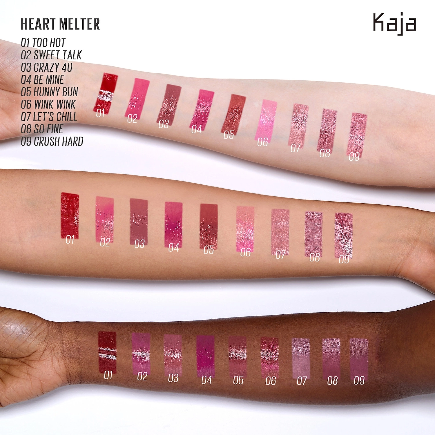 For best application results, click the heart-shaped applicator twice to dispense the perfect amount of product. Apply directly to lips for a high-shine finish. For added shine and shimmer, use the transformer shade Wink Wink alone or pair with your favorite lip products. For a coordinated look, pair with Kaja’s heart-shaped Cheeky Stamp.