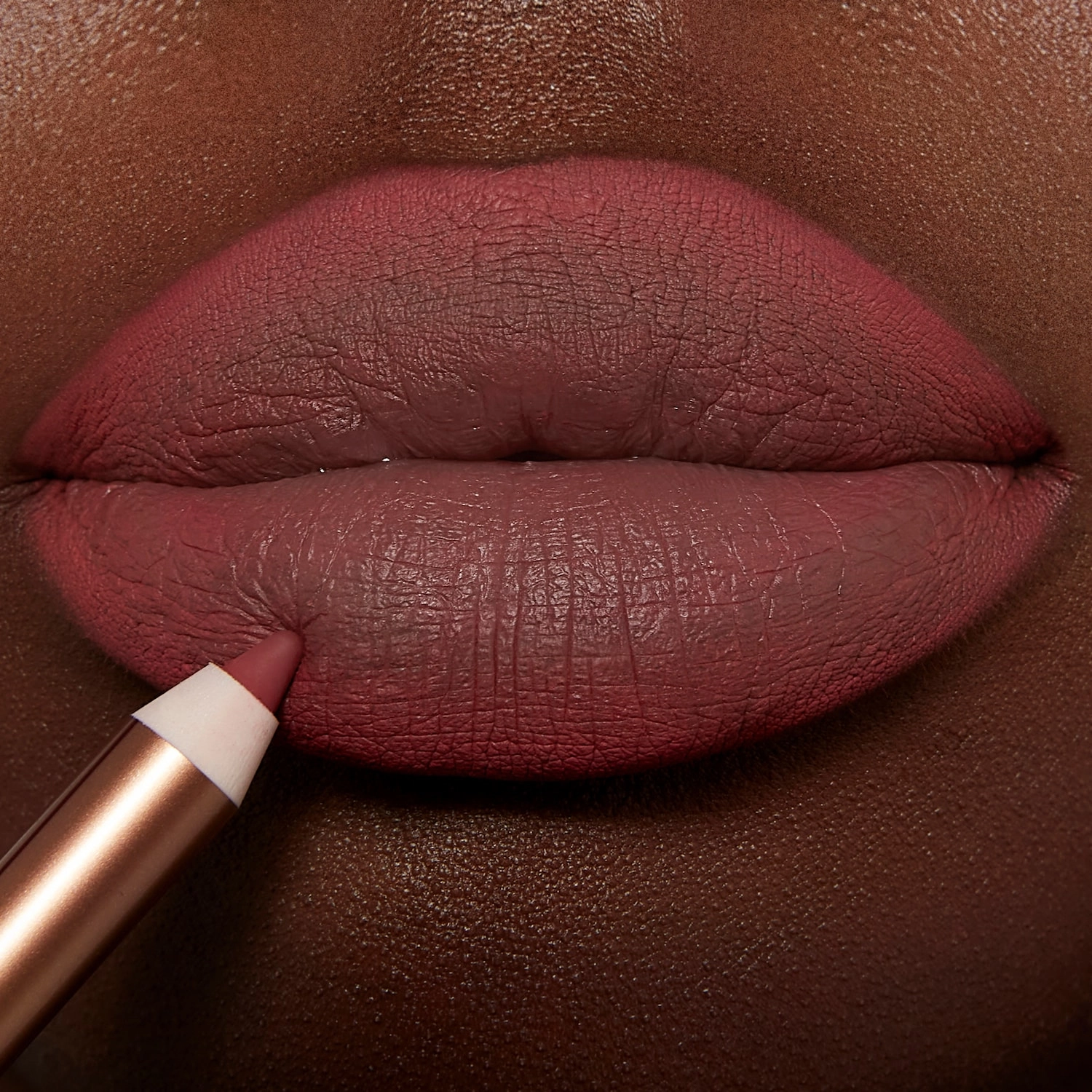 To achieve the perfect lip look, start by outlining your lips with the Charlotte Tilbury Lip Cheat Lip Liner, starting from the corner of your top lip. For a fuller lip look, draw over the edge of your natural lip line. Once you’ve outlined your lips, fill them in using the matching lipstick shade for a seamless finish.