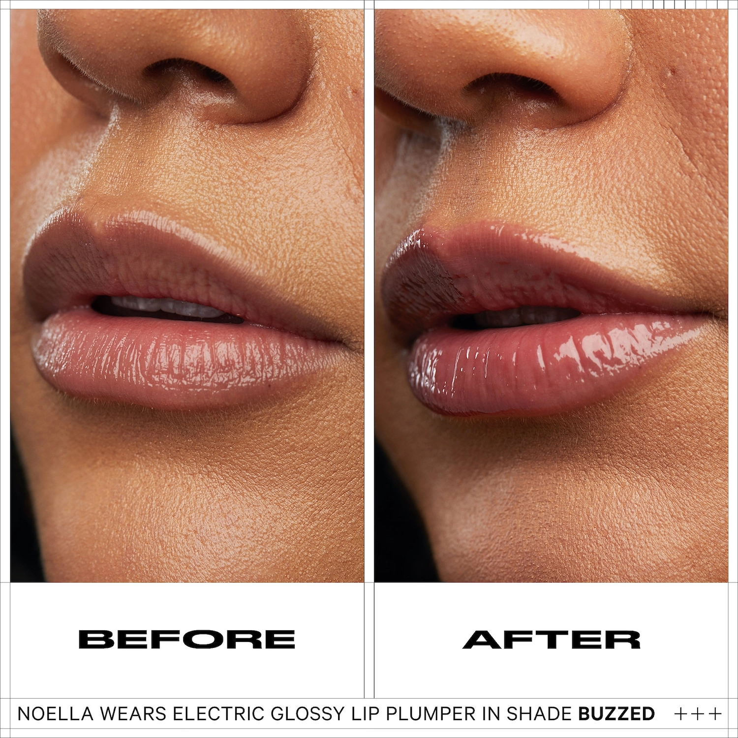 Get fuller-looking lips with MILK MAKEUP Electric Glossy Lip Plumper. This clean, vegan lip gloss provides a high-shine finish and a tingling sensation. Infused with Sichuan Pepper, Vegan Collagen, and Volulip™, it moisturizes and plumps for a hydrated and soft look. Swipe it on clean lips or over any lip color for quick visible volume. Reapply throughout the day for a glossy pout. Exfoliate your lips with KUSH Lip Scrub for a smooth surface before application.