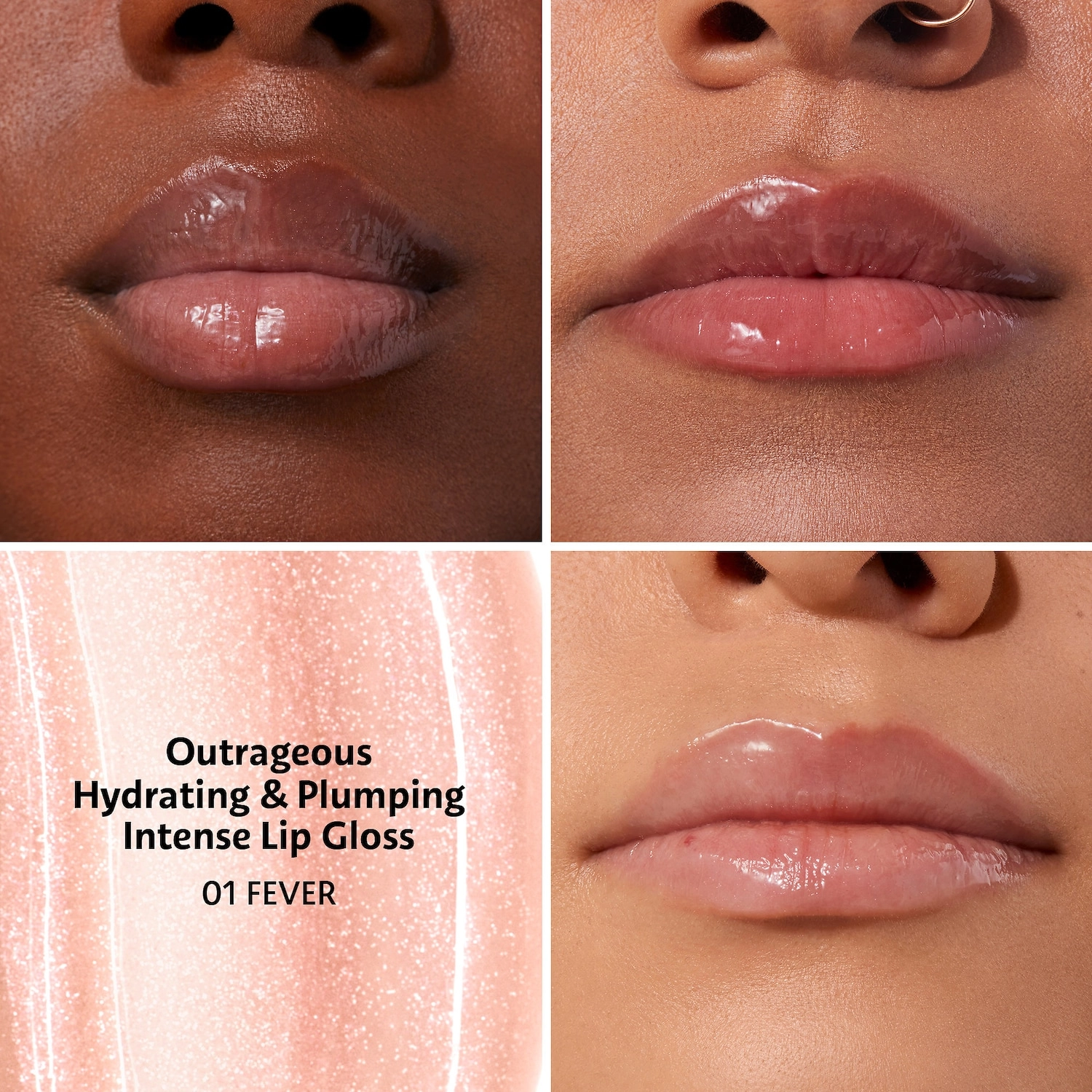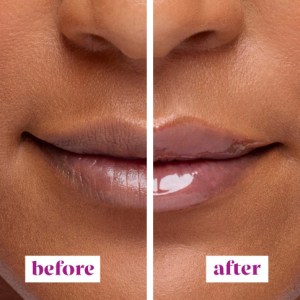- High-shine gloss for fuller lips