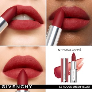 Experience the luxurious Givenchy Le Rouge Sheer Velvet Matte Lipstick in the shade 37 Rouge Grainé. This best-selling lipstick offers a vibrant, warm-toned red color that is perfect for any occasion. With its hydrating formula and customizable coverage, it provides a long-wearing matte finish. Free of sulfates SLS & SLES, it is gentle on the lips while still delivering intense color.