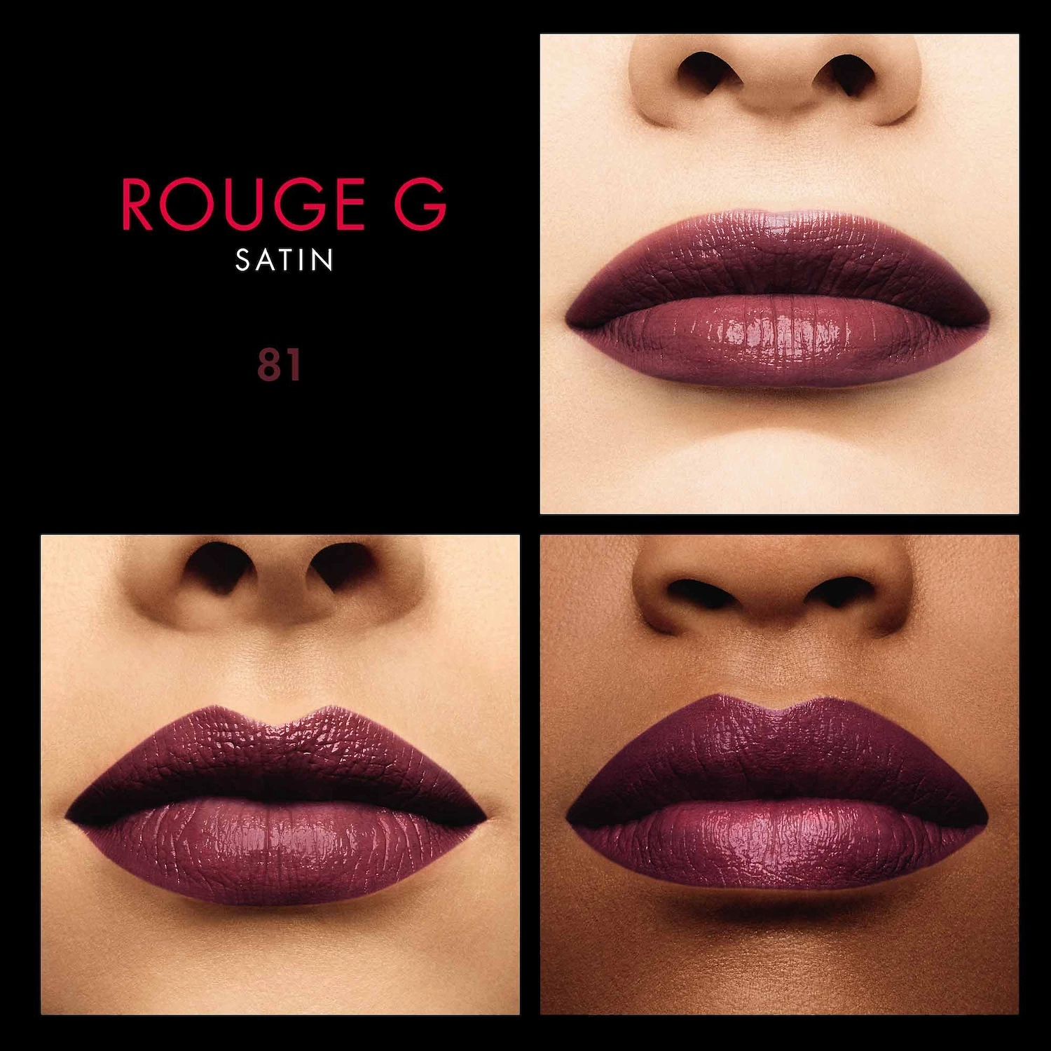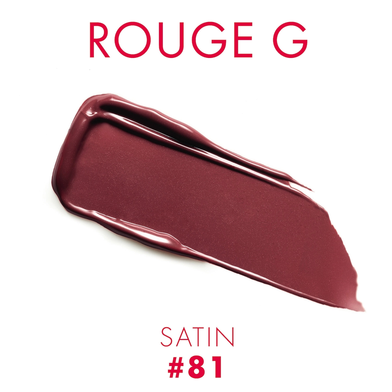 Indulge in the luxurious GUERLAIN Rouge G Refillable Lipstick in Color N°81 – Purple. This ultra-comfortable lipstick is available in three stunning finishes: satin, luxurious velvet matte, and sheer shine. With its nourishing formula enriched with hyaluronic acid, it provides hydration, smoothness, and visibly plumps your lips. The weightless, creamy texture glides on effortlessly, delivering vibrant color that lasts all day.