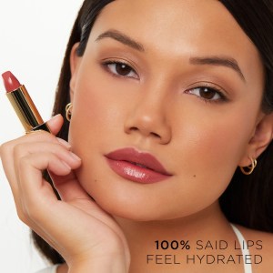 To achieve the perfect pout, simply apply the Hourglass Unlocked™ Satin Crème Lipstick directly from the bullet, starting from the center and working your way outward. Press your lips together and apply more if desired.
