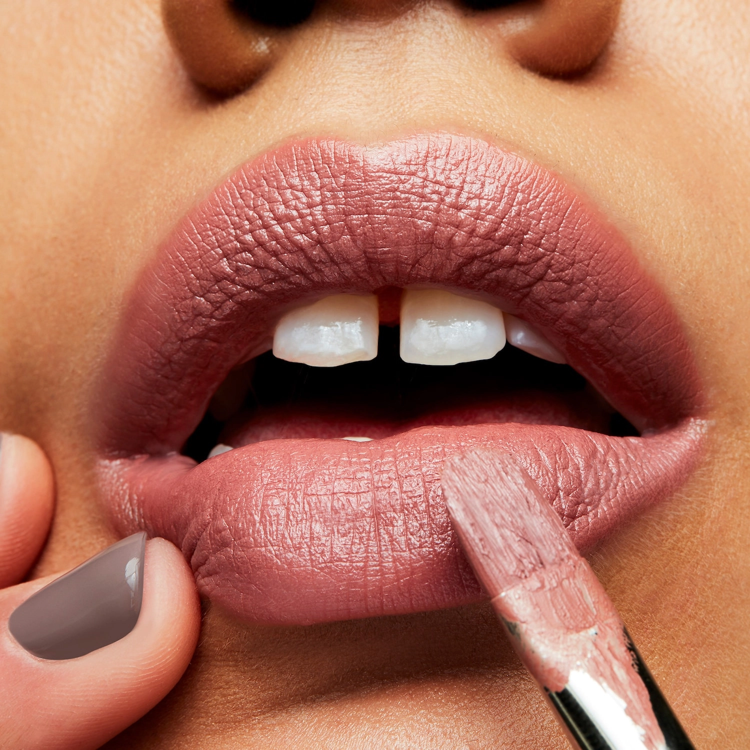 - Apply the MAC Cosmetics Satin Lipstick in Spirit directly from the bullet or use a lip brush for more precision.
