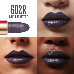 Introducing the Valentino Rosso Valentino High Pigment Refillable Lipstick in the color 602R Stellar Note. This refillable lipstick is a must-have for any makeup lover. With its striking deep grey purple shade and satin finish, it delivers intense color to your lips in just one stroke.
