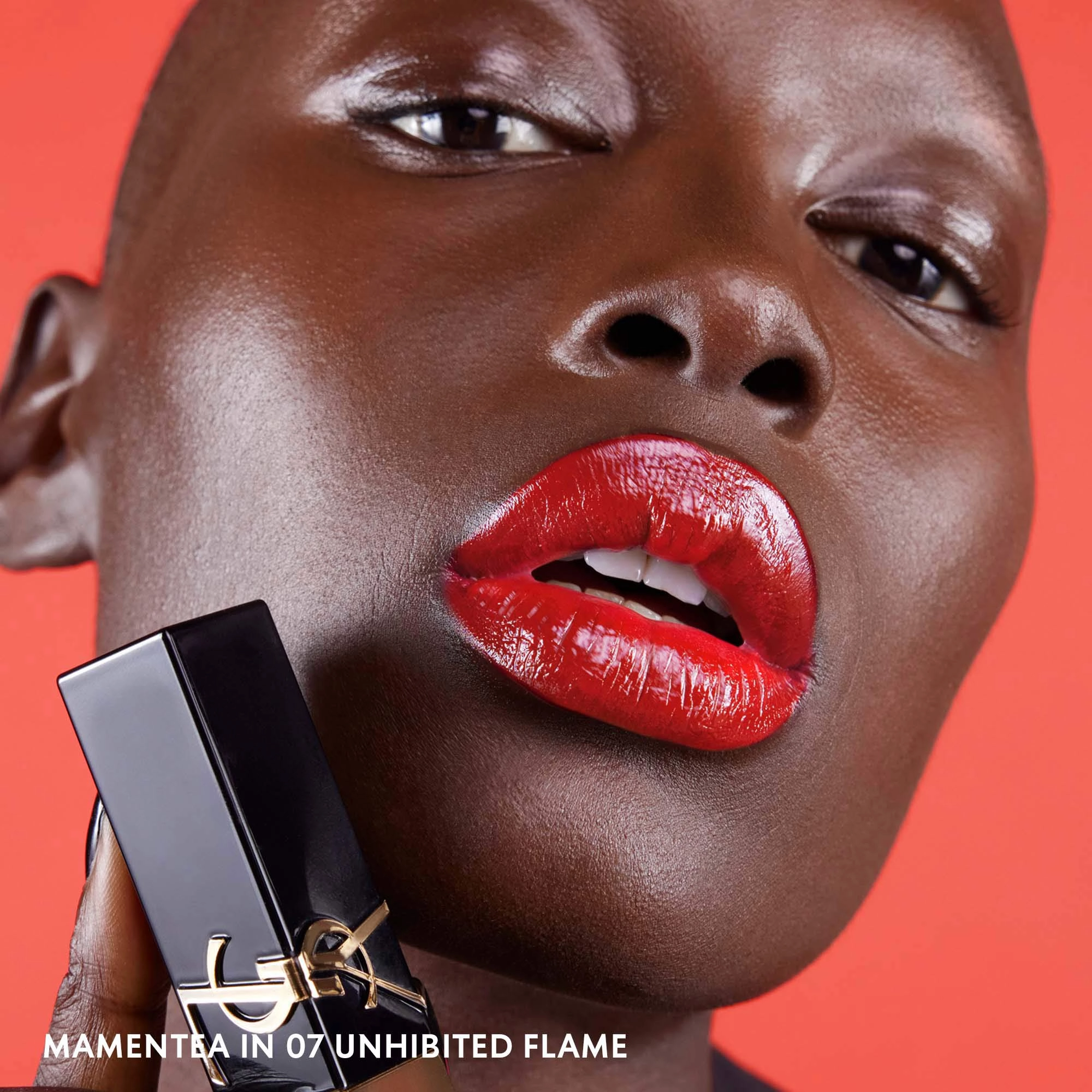 Experience the bold and vibrant color of Yves Saint Laurent The Bold High Pigment Lipstick in the shade 07 Unhibited Flame. This ultra-pigmented satin lipstick delivers full coverage color in just one swipe. With its moisturizing formula and buildable-shine finish, it provides a comfortable and hydrating wear.