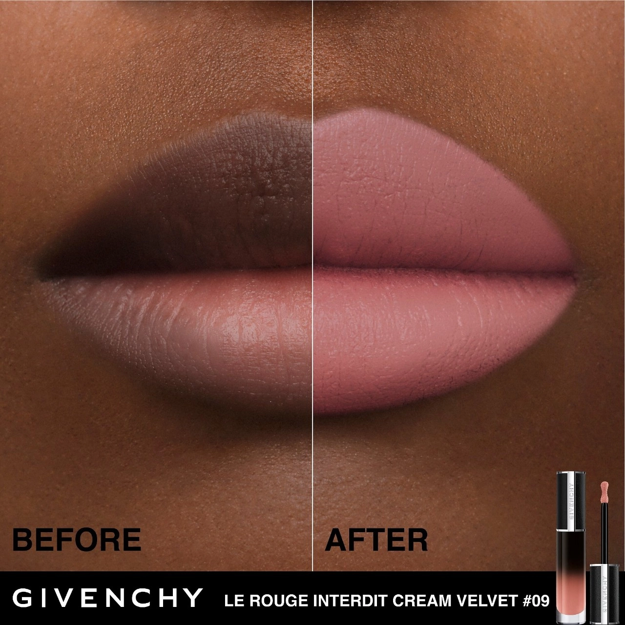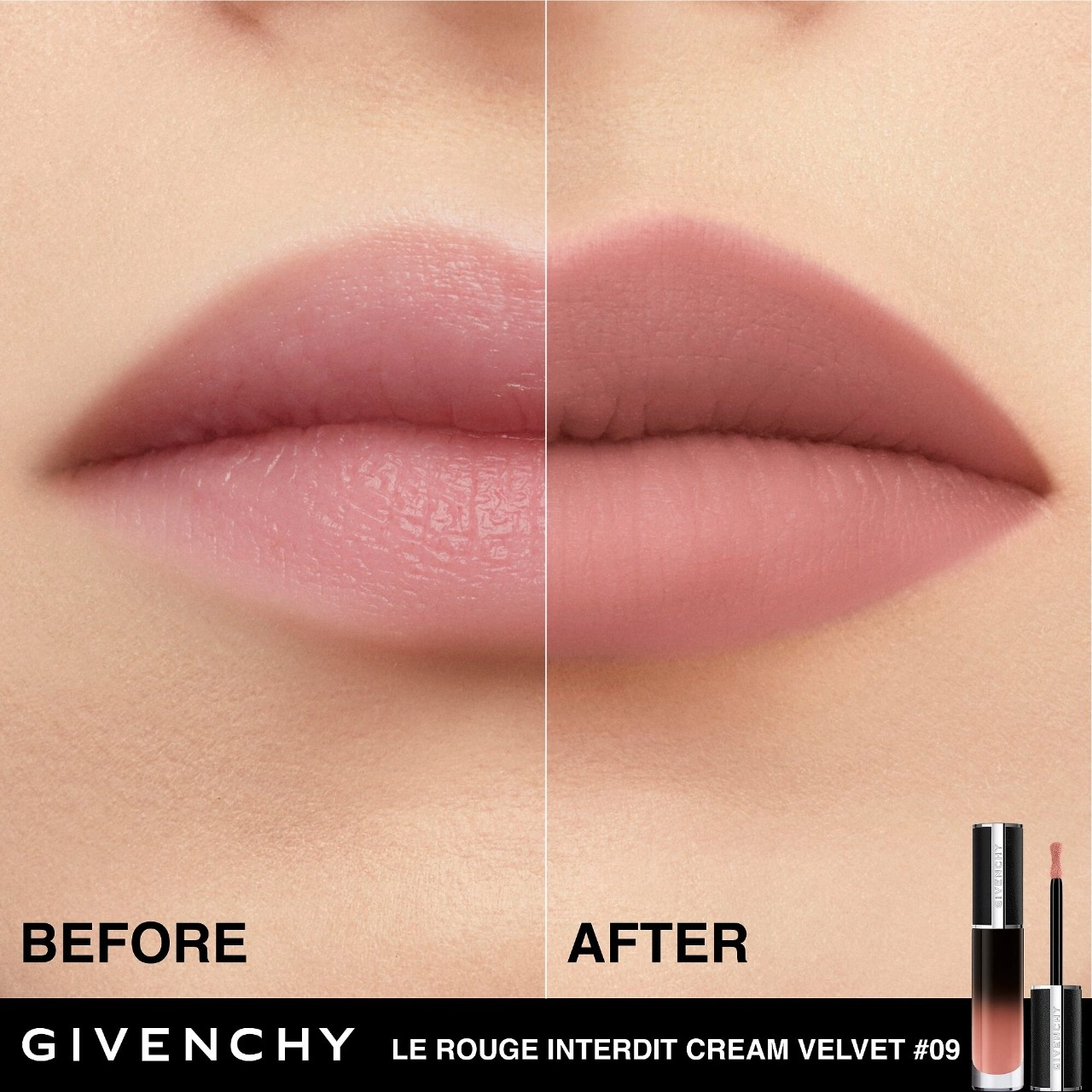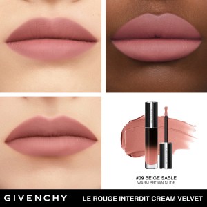 Experience the luxurious Givenchy Le Rouge Interdit Cream Velvet Lipstick in the shade N09 Beige Sable. This highly pigmented, matte-velvet liquid lipstick is designed to provide up to 12 hours of wear, ensuring long-lasting color and confidence throughout the day.