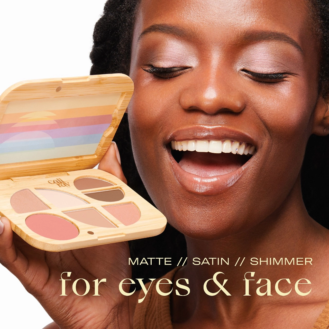 Introducing the caliray Endless Sunset Face and Eyeshadow Talc-Free Palette, a sustainable bamboo compact housing seven carefully curated shades for your ultimate beauty exploration. From barely-there elegance to sultry and sexy allure, this palette empowers you to define your look with shimmering finesse.