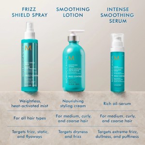 Experience the power of Moroccanoil Mini Smoothing Lotion for frizz-free hair. This all-in-one styling lotion is designed to aid in blow drying for healthy, smooth results. With its lightweight formula infused with argan oil and vitamins, it nourishes and protects your hair from moisture and humidity, leaving you with shiny, frizz-free locks.