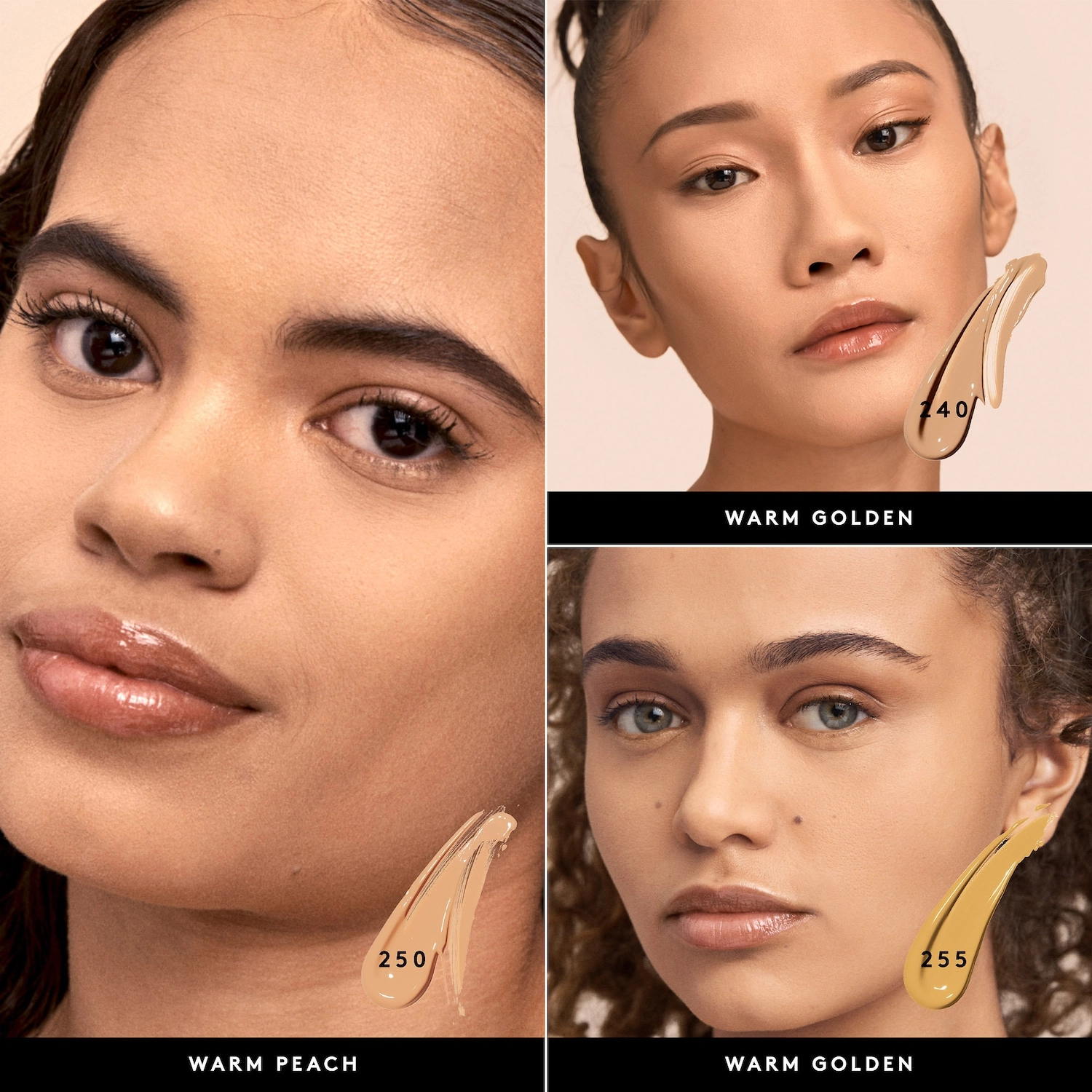 | Color | 250 – Light Medium with Warm Peach Undertones |