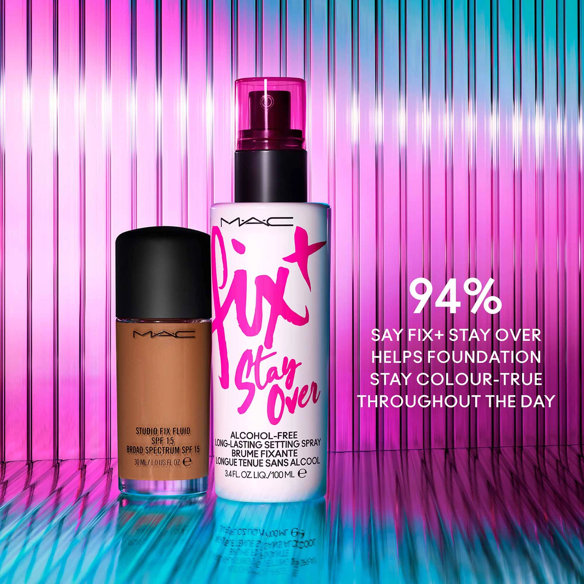 Experience the power of MAC Cosmetics FIX+ Stay Over Alcohol-Free Long Lasting Setting Spray-MINI. Its lightweight formula and long-lasting hold make it a must-have in your makeup routine. Say goodbye to touch-ups and hello to a flawless finish that lasts all day.