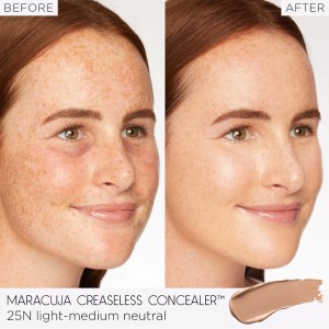 Discover the Tarte Mini Maracuja Creaseless Concealer in the shade 25N Light-Medium Neutral. This vegan concealer offers full coverage with a radiant finish, making it perfect for addressing redness and dark circles. Its hydrating formula ensures long-lasting wear, while the travel-friendly size allows you to take it on the go.