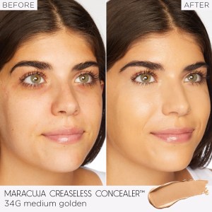 Experience flawless coverage with the Tarte Mini Maracuja Creaseless Concealer in the shade 34G Medium Golden. This vegan concealer offers full coverage with a radiant finish, perfect for hiding dark circles and redness. The creamy formula is enriched with maracuja, vitamin C, and vitamin E to provide firmer, brighter, and smoother-looking skin.