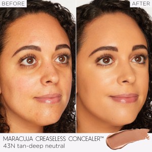Experience the power of Tarte Mini Maracuja Creaseless Concealer in the shade 43N Tan-Deep Neutral. This vegan, full-coverage concealer is perfect for those with tan to deep skin tones and neutral undertones. Its creamy formula provides a radiant finish and is suitable for all skin types.