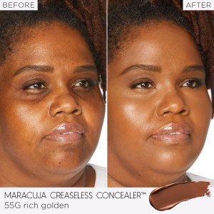 The Tarte Mini Maracuja Creaseless Concealer is a vegan, full-coverage concealer that provides a radiant finish. It is specifically designed for deeper skin tones with golden or olive undertones. The creamy formula is hydrating and perfect for covering redness and dark circles. For best results, pair it with tarte’s Creaseless Concealer Brush.