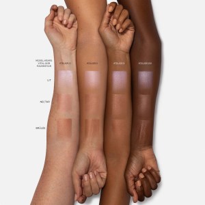 Glide the Westman Atelier Mini Petite Lit Up Cream Highlighter Stick on the tops of your cheeks, cheekbones, Cupid’s bow, lips, and tear ducts for radiant clarity. Use it throughout the day for a skin refresh. This versatile highlighter can be worn alone, under, or over foundation. For a more subtle glow, apply directly to the high points of your face and layer foundation. For a glassier glow, apply over foundation anywhere desired and blend with your fingers. You can also apply it with your fingers to the tear ducts and outer edge of the eyes to brighten and open them. Make sure to choose a shade that adds brightness to your eyes. Dab the highlighter onto your lips for juicy hydration.