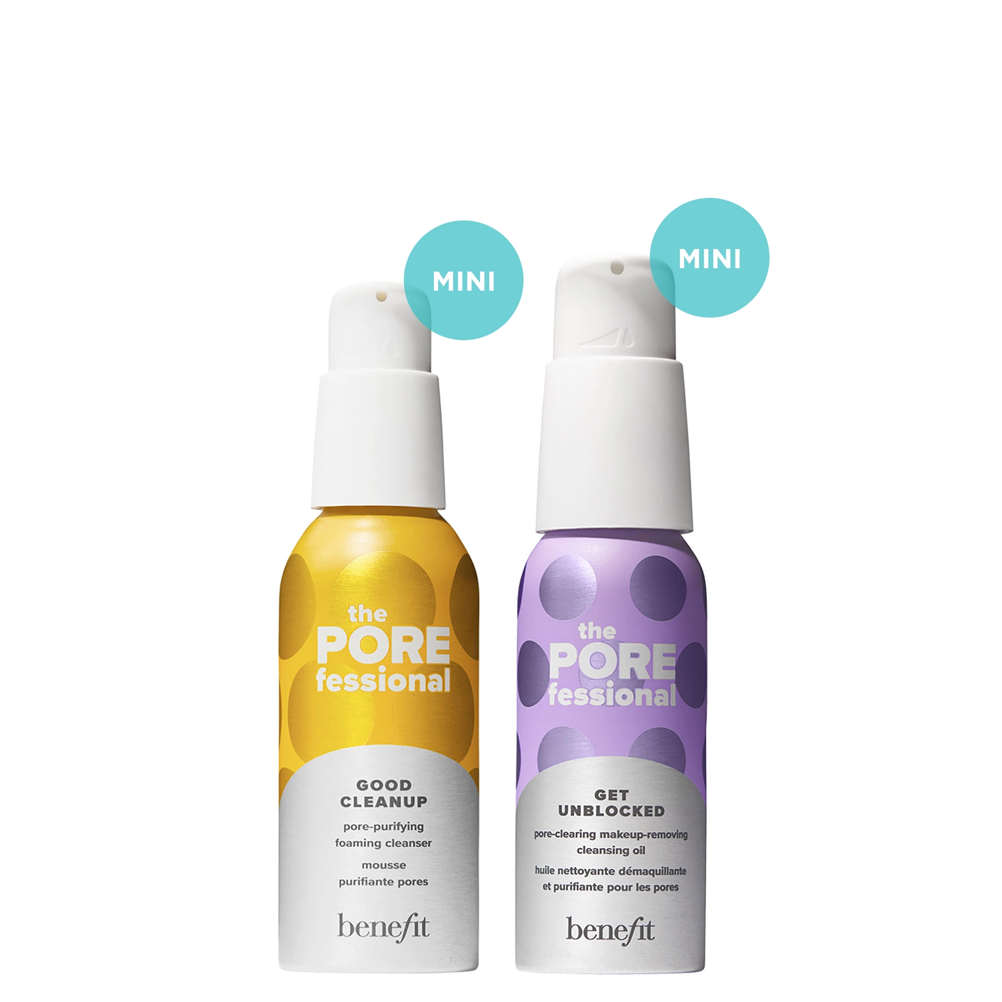 Smooth skin starts with double cleansing! Benefit Cosmetics presents The POREfessional Double Cleanse Value Set, the ultimate solution for achieving clean and refreshed skin. This set includes a mini cleansing oil and foaming cleanser duo, plus a FREE sample-size clay mask. It is perfect for those with oily, combination, and normal skin types.
