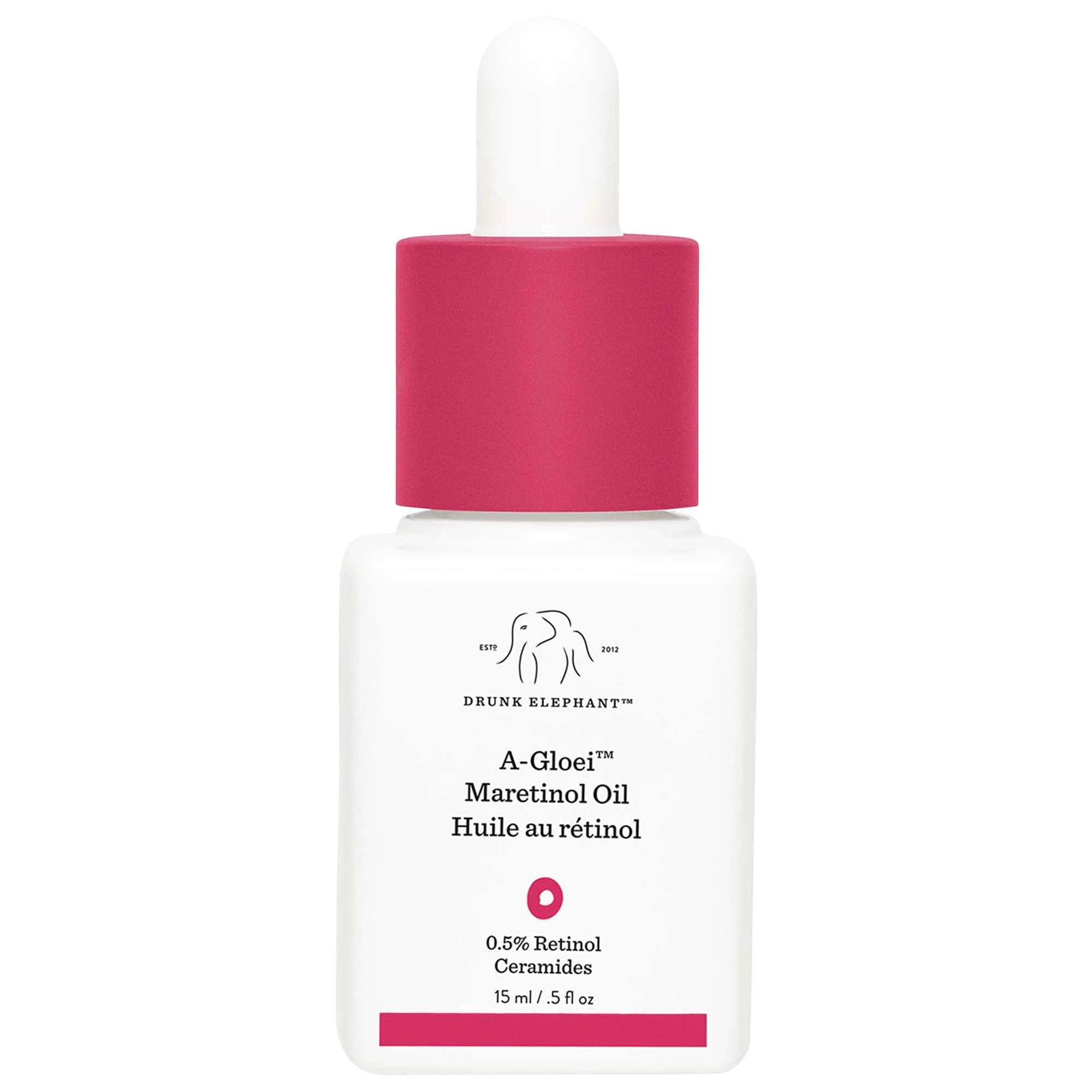 Experience the power of retinol with the Drunk Elephant Mini A-Gloei Retinol Oil. This vegan and clean formula is designed to minimize the look of lines, hyperpigmentation, blemishes, and sun damage, while locking in moisture and restoring a healthy glow. Suitable for all skin types, this retinol face oil is formulated with 0.5% retinol to improve the look and feel of uneven skin tone and texture, while warding off UV and free radical damage.