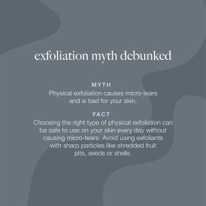 - Dispense about a half teaspoon of the exfoliator into wet hands.