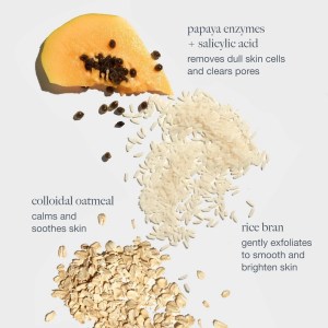 This exfoliator contains Papain Enzymes and Salicylic Acid to draw out excess oil, clear clogged pores, and smooth the look of skin. Rice Bran-Derived Phytic Acid gently exfoliates to visibly brighten and balance uneven skin tone. Colloidal Oatmeal calms skin, reducing the appearance of redness and irritation.