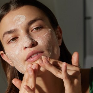 Massage the exfoliator onto clean, damp skin using circular motions.