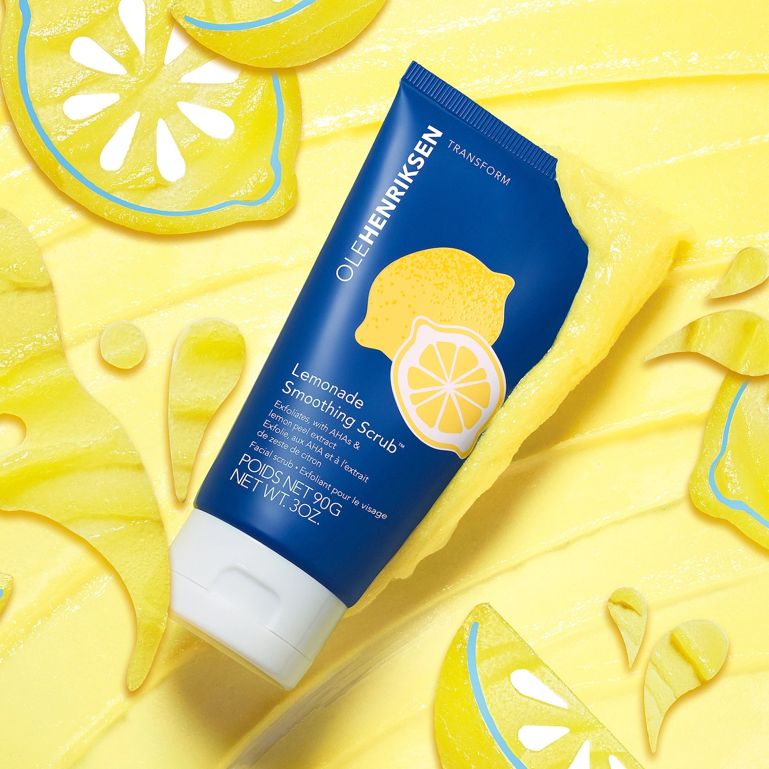 Elevate your skincare routine with the OLEHENRIKSEN 10% AHA Lemonade Smoothing Scrub. Experience the power of AHAs, lemon peel, and sugar as they transform your skin, leaving it smoother, more refined, and radiant. Say hello to a refreshed complexion.