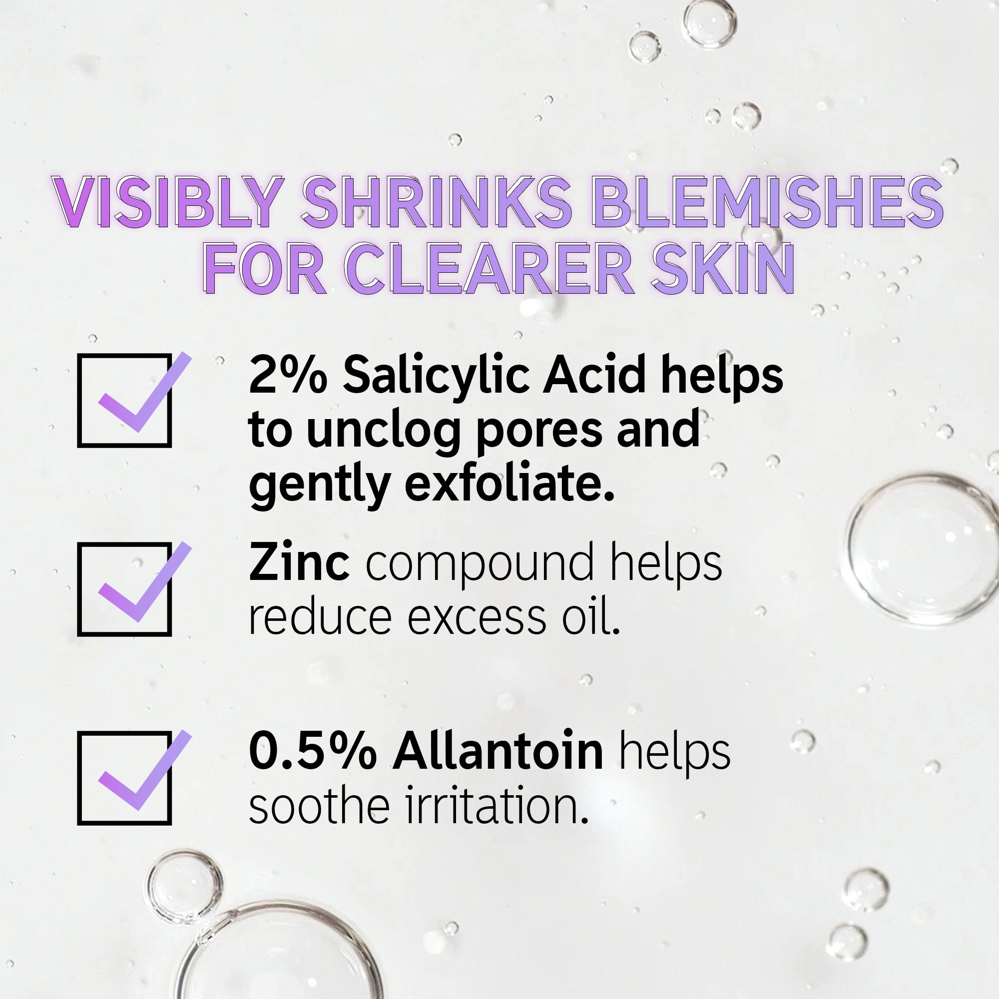 - Formulated with 2% Salicylic Acid to gently exfoliate the skin and unclog pores