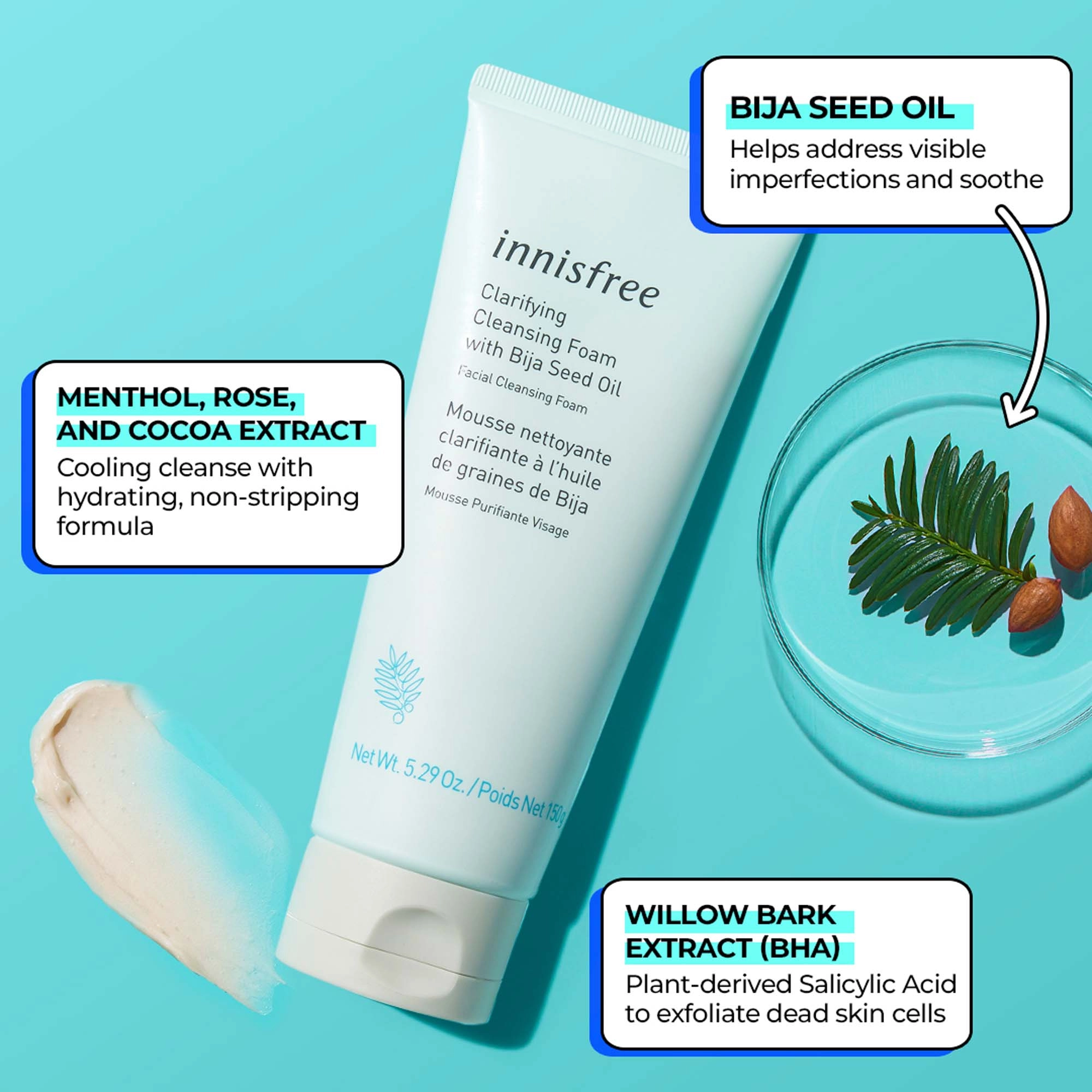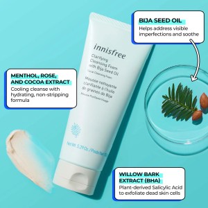 Achieve purified, visibly smoother skin with the innisfree Clarifying Cleansing Foam. This refreshing facial foam is formulated with bija seed oil and willow bark extract, a plant-derived salicylic acid, to gently exfoliate and clear up troublesome buildup from pores. It provides a rich, creamy lather that deeply cleanses without stripping the skin’s natural moisture.