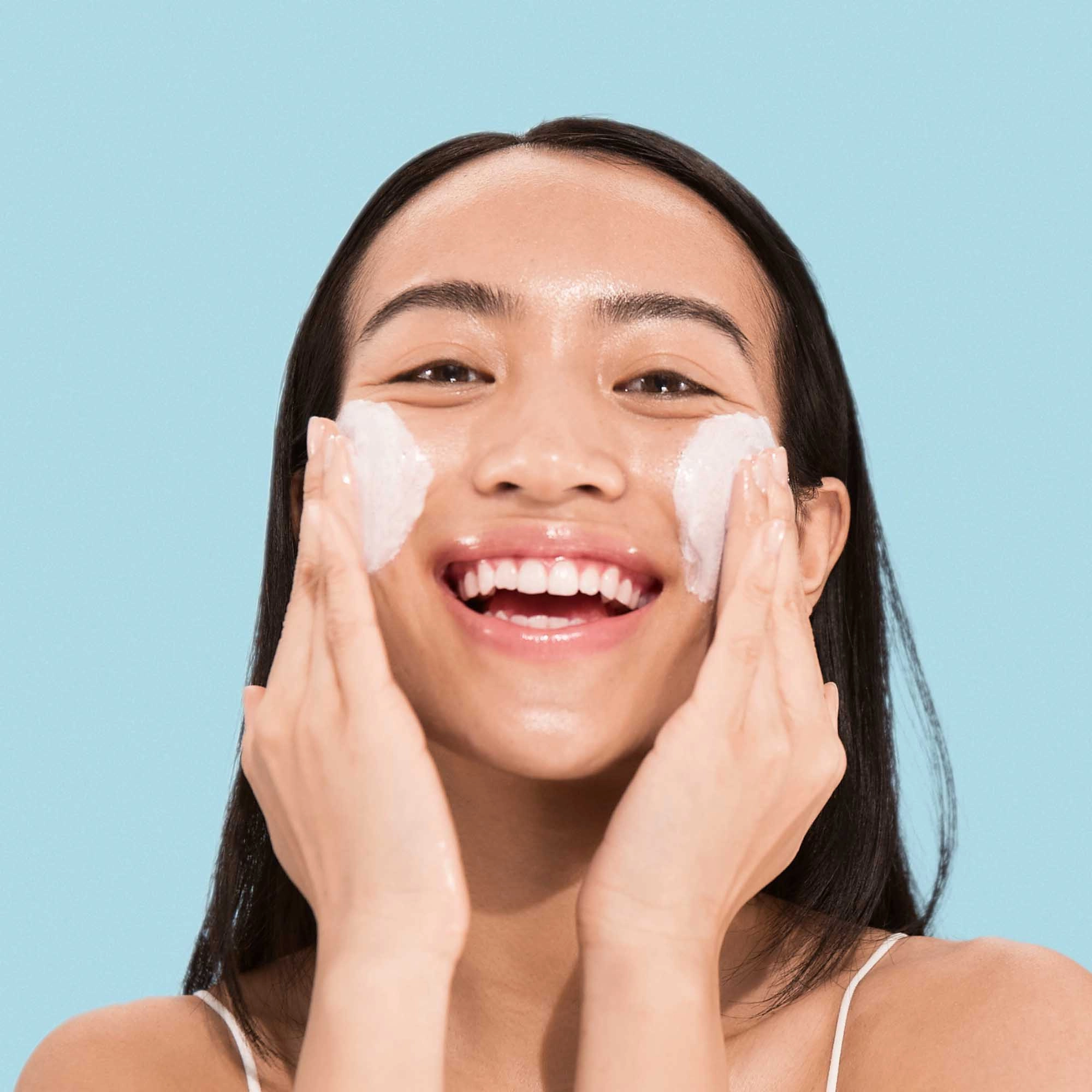 – Gently massage over wet face and thoroughly rinse with lukewarm water.