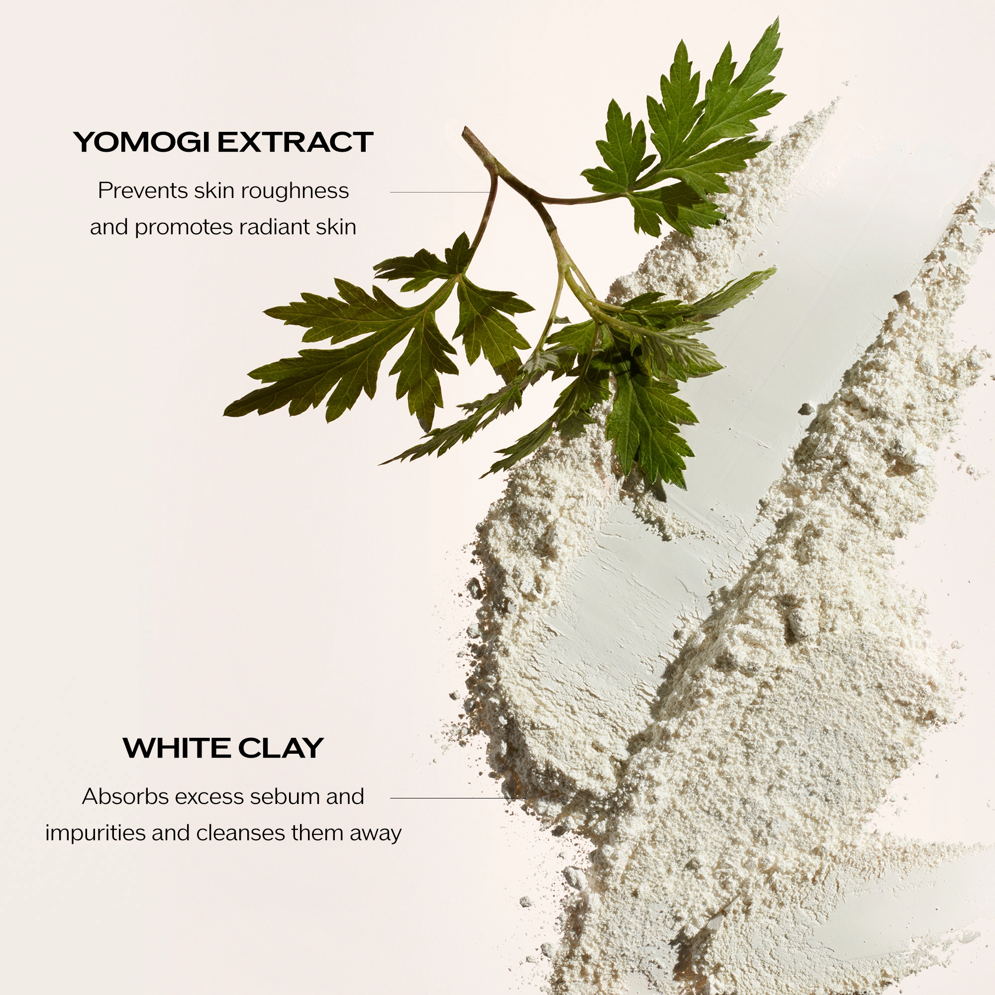 - Micro White Powder and White Clay: Remove dirt and excess dead cells on the surface and absorb oxidized sebum for a clear, radiant finish.