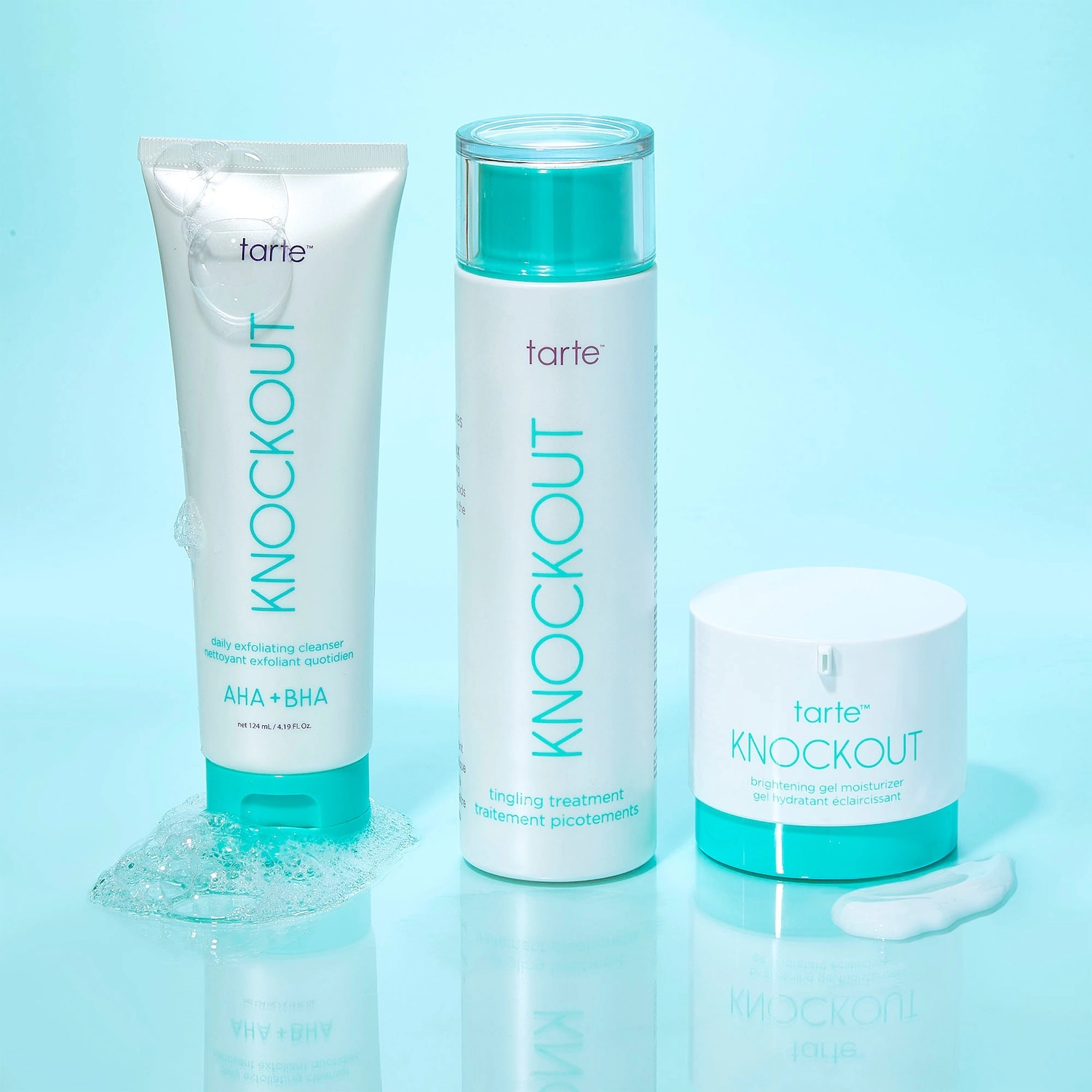 To use Tarte Knockout Daily Exfoliating Cleanser, start with a dime-size amount. Add water and work into a lather. Massage onto skin, avoiding the eye area. Rinse thoroughly for clean and refreshed skin.