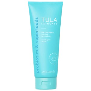 To use TULA Skincare The Cult Classic Purifying Face Cleanser, massage the cleanser onto wet skin and rinse with water. Use it morning and night for best results. The probiotic extracts in this cleanser help maintain balance, while the prebiotics from chicory root nourish your skin. Turmeric, white tea, and blueberry extracts improve texture, leaving your skin looking healthier and smoother.