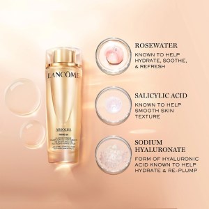 Experience the luxurious Lancôme Absolue Rose 80 Brightening Toner with Salicylic Acid. This hydrating face toner is infused with 80% soothing rosewater, leaving your skin visibly refreshed, brightened, even, and luminous. Perfect for those with uneven texture and dryness, this toner is formulated with salicylic acid to visibly smooth skin texture and balance the formula’s pH. Suitable for oily, combination, and normal skin types, this toner is free of parabens and silicones.