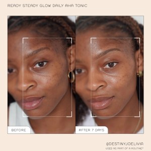 To use the Ready Steady Glow AHA Toner, apply it to freshly cleansed skin in the evening with a reusable cotton pad, avoiding the eye area. For extra-sensitive skin, dampen your cotton pad with water beforehand to dilute the formula. Start by using it every other day and gradually increase usage as your skin becomes accustomed to it. Avoid using it on the same day as another exfoliator.
