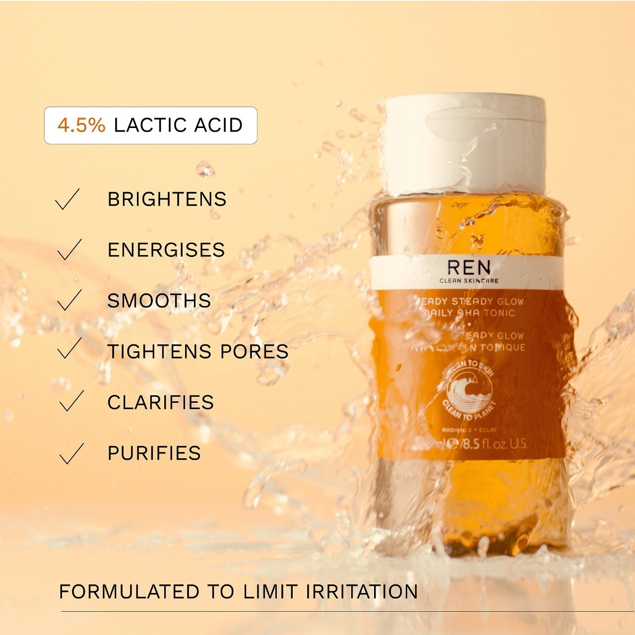 Beauty Collection is a curation of brands committed to evolving the beauty industry. REN Clean Skincare Ready Steady Glow AHA Toner is formulated without certain ingredients that are potentially harmful to human health and the environment. It is free of phthalates, formaldehyde or formaldehyde releasers, oxybenzone and octinoxate, hydroquinone, triclosan, coal tar, methylisothiazolinone and methylchloroisothiazolinone, insoluble plastic microbeads, and more.
