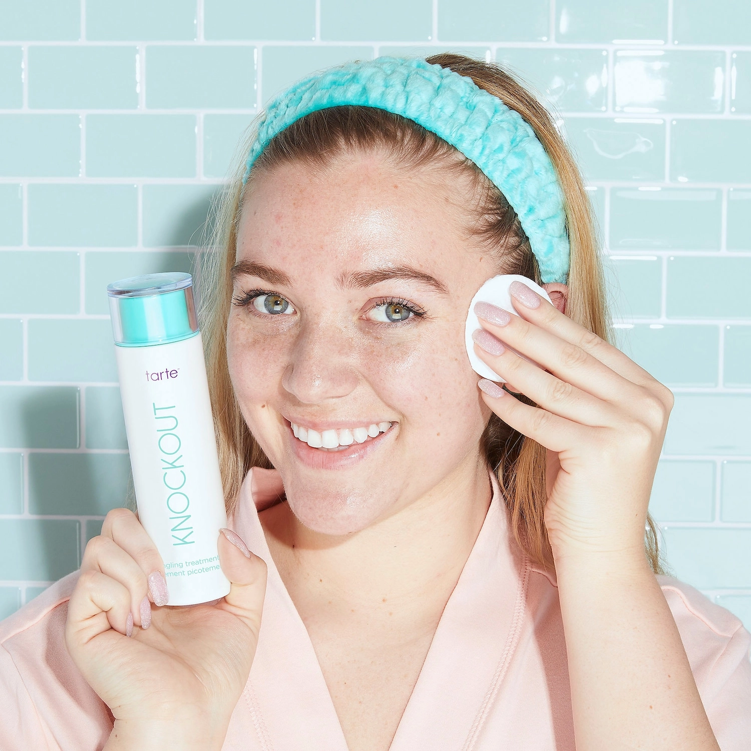 To use the Tarte Knockout Tingle Treatment Toner, start by cleansing your face. Moisten a cotton ball with the toner and in a sweeping motion, begin with the décolleté, raise towards the neck, and then the face, avoiding the contour of the eyes. Allow your face to dry before applying the next product.