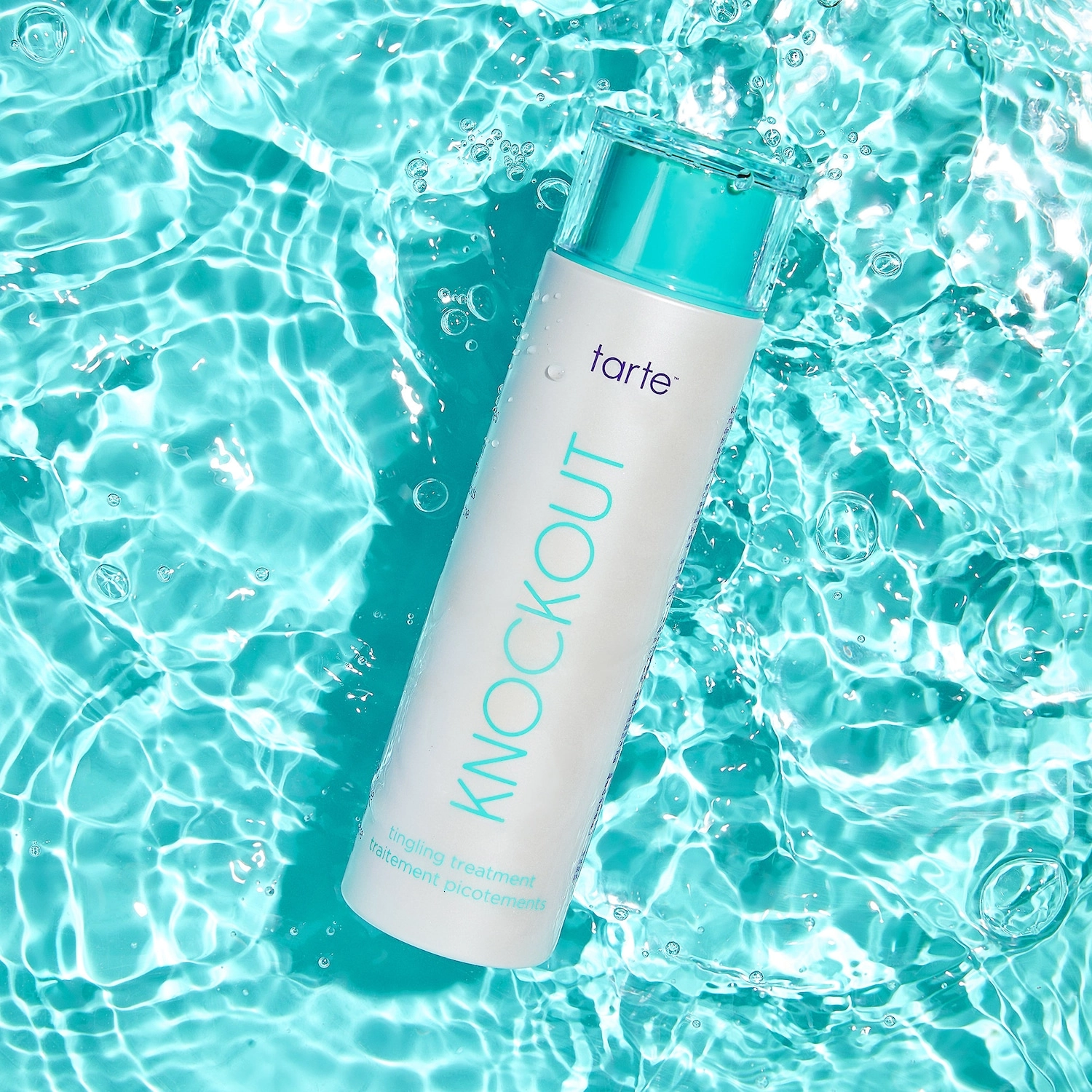 Transform your skin with the Tarte Knockout Tingle Treatment Toner. This vegan toner acts as a complexion workout in a bottle, helping to resurface your skin and balance its pH. It is suitable for all skin types, including normal, dry, combination, and oily.