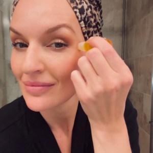- Gently roll the oil onto the under-eye area.
