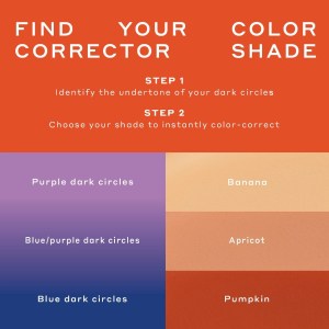 - Shades: Banana (for purple dark circles), Apricot (for blue/purple dark circles), Pumpkin (for blue dark circles)