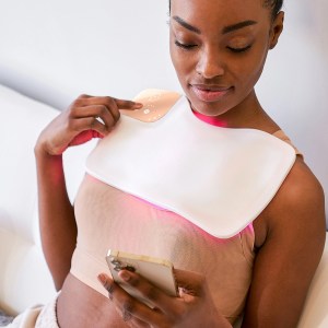 The DRx SpectraLite™ BodyWare Pro features 148 red LED lights and 68 blue LED lights that work together to visibly smooth wrinkles, clear acne, reduce dark spots, and provide mild pain relief. In just three minutes, the red lights penetrate deep within your skin’s dermis, supporting collagen production and addressing age-related concerns. The blue lights target P. acnes bacteria, visibly minimizing breakouts.