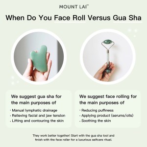 - Move to the jawline and use the end of the Gua Sha tool with the two curves. Start from the chin and scrape until the ear. Gently massage the Gua Sha tool into the ear to release tension.