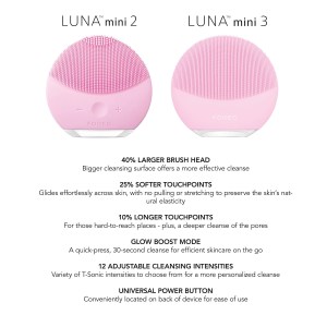 Experience the power of the FOREO LUNA™ Mini 3 in the color Midnight. This compact cleansing device is designed to give you a 30-second glow boost for fresh, visibly glowing skin. It’s perfect for those with uneven texture and acne-prone skin.